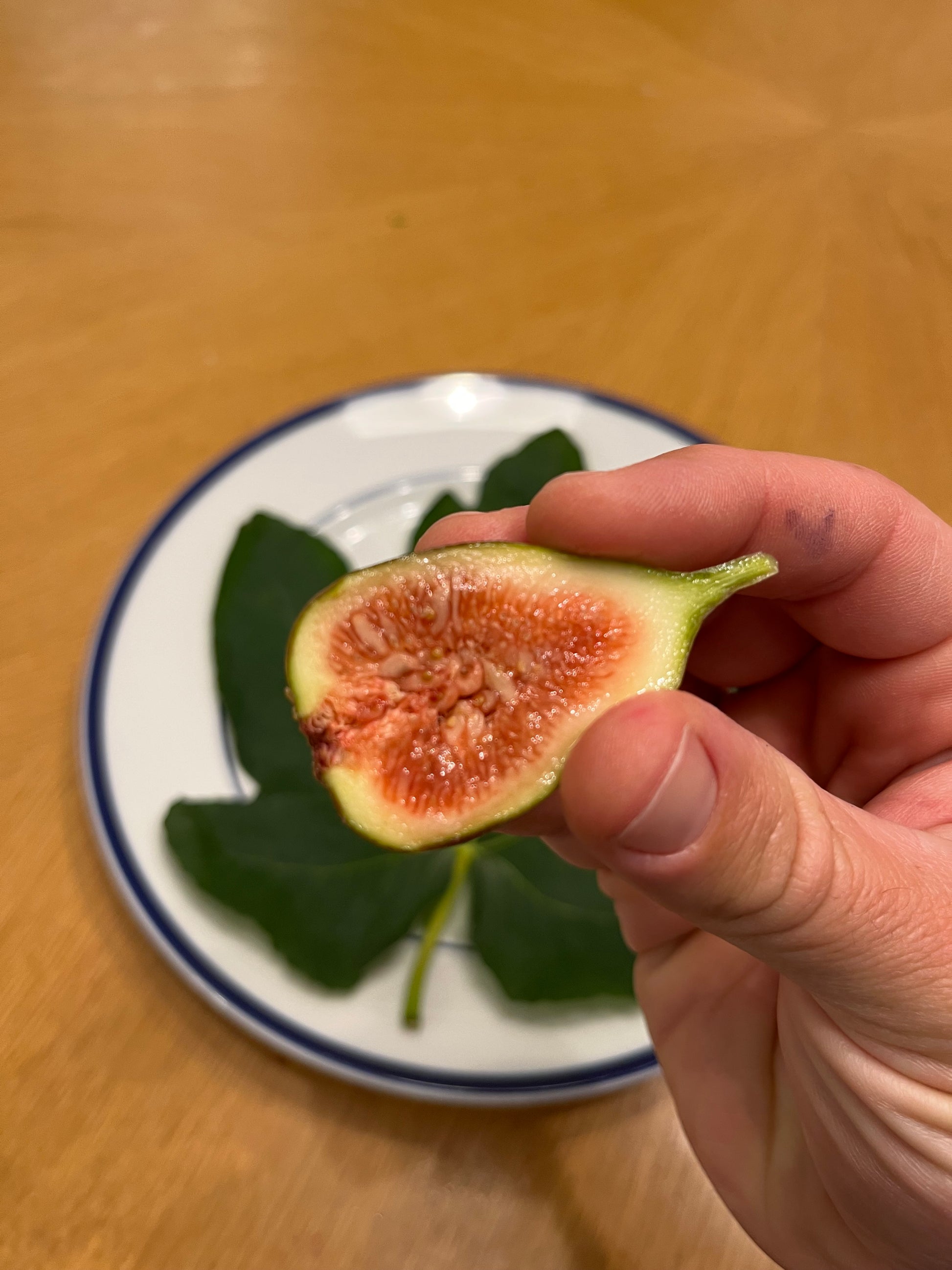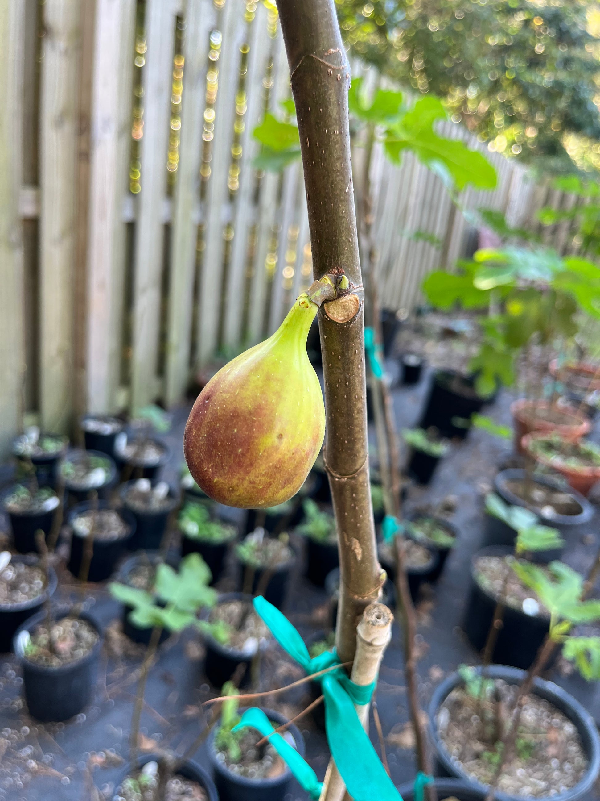 The fig is unique and grows really well in a container here in Wilmington, NC. Very pretty multi tones purple and yellow figs with a pink interior. Looking forward to seeing how this fig tastes as it matures becuase it's very pretty and very cold hardy!
